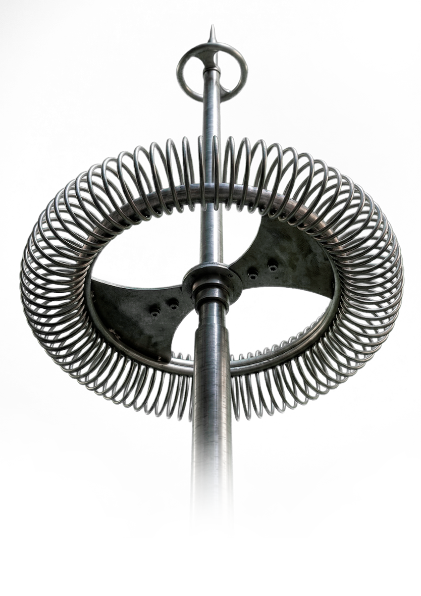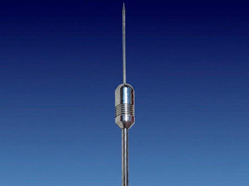 El pararrayo tipo "dipolo" concentra el gradiente de potencia y excitador, barra de duraluminio de 19mm. X 150cm. De longitud, con núcleo aislante de neopreno para ensamble a mástil de duraluminio atmosférica por medio de su excitador ambiental que se carga constantemente al potencial circundante y defina en esa forma la incidencia sobre la punta receptora, incrementando el canal de ionización y por lo tanto el cono de protección del pararrayo.